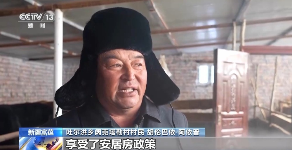 吐爾洪鄉(xiāng)闊克塔勒村村民 胡倫巴依·阿依普:黨和政府的關(guān)懷下,享受了安居房政策,也有暖和的暖圈。今天(18日)晚上溫度已經(jīng)達到了零下52℃,牲畜都在暖圈里,飼草料也充足。