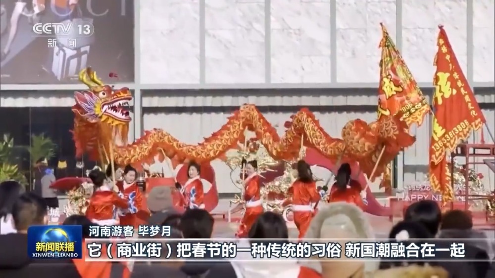 河南游客 畢夢(mèng)月:商業(yè)街把春節(jié)的一種傳統(tǒng)的習(xí)俗、新國(guó)潮融合在一起,很時(shí)尚,這種東西我們年輕人也會(huì)更加喜歡。