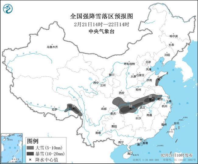 中央氣象臺2月21日10時繼續(xù)發(fā)布暴雪黃色預警:預計2月21日14時至22日14時,山東東南部、河南南部、安徽中部、江蘇中部、湖北大部、湖南北部、重慶東部和北部、四川東北部、西藏東部等地有大雪,其中,安徽中部、湖北南部和東部、湖南北部、西藏東部等地的部分地區(qū)有暴雪(10~18毫米)。上述地區(qū)新增積雪深度3~7厘米,局地可達10厘米以上。