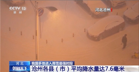 昨天早晨至21時,河北滄州市區(qū)降水量達16.2毫米,滄州各縣(市)平均降水量達7.6毫米,肅寧國家站最大達16.7毫米。