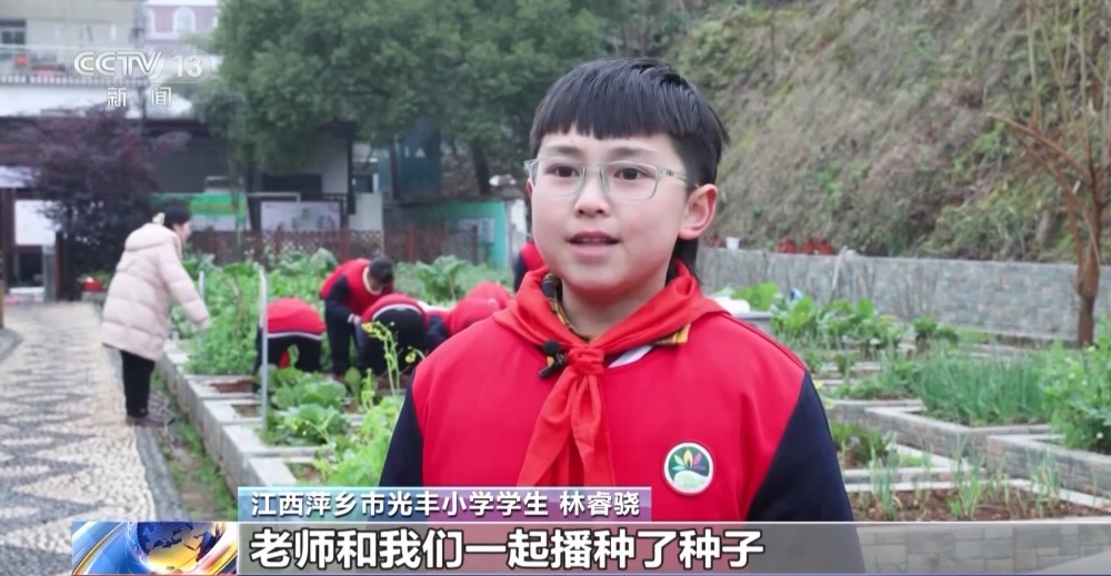 在江西萍鄉(xiāng),光豐小學(xué)的老師將新學(xué)期的第一課放到了室外,孩子們來(lái)到菜園實(shí)地觀察各種農(nóng)作物,將手中的蔬菜種子播撒在土地里,親身體驗(yàn)勞動(dòng)的過(guò)程。