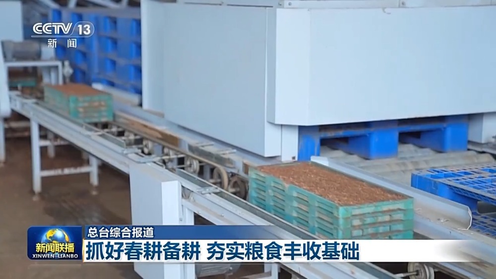 當前,南方早稻育秧進入高峰期。在江西余江的育秧中心,機械化育秧流水線加緊作業(yè),一條生產(chǎn)線一個小時就能育秧2400盤。工廠化育秧降低了秧苗的病蟲害,保障了秧苗的存活率,為實現(xiàn)水稻高產(chǎn)提供了有效保障。目前,江西早稻集中育秧已經(jīng)超過1000萬畝。