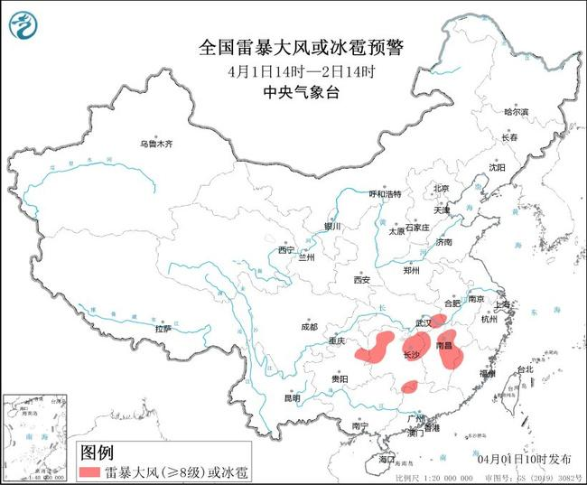 預(yù)計(jì)4月1日14時(shí)至2日14時(shí),湖北東部、湖南中北部、江西中北部、貴州東北部等地的部分地區(qū)將有8—10級雷暴大風(fēng)或冰雹天氣,局地風(fēng)力可達(dá)11級以上;安徽中南部、江蘇中南部、湖北中東部、湖南中北部、江西、浙江西部、福建西部和沿海地區(qū)、重慶中部、貴州東部、云南西北部、廣東北部等地的部分地區(qū)將有短時(shí)強(qiáng)降水天氣,最大小時(shí)雨量30—50毫米,局地可達(dá)70毫米以上。