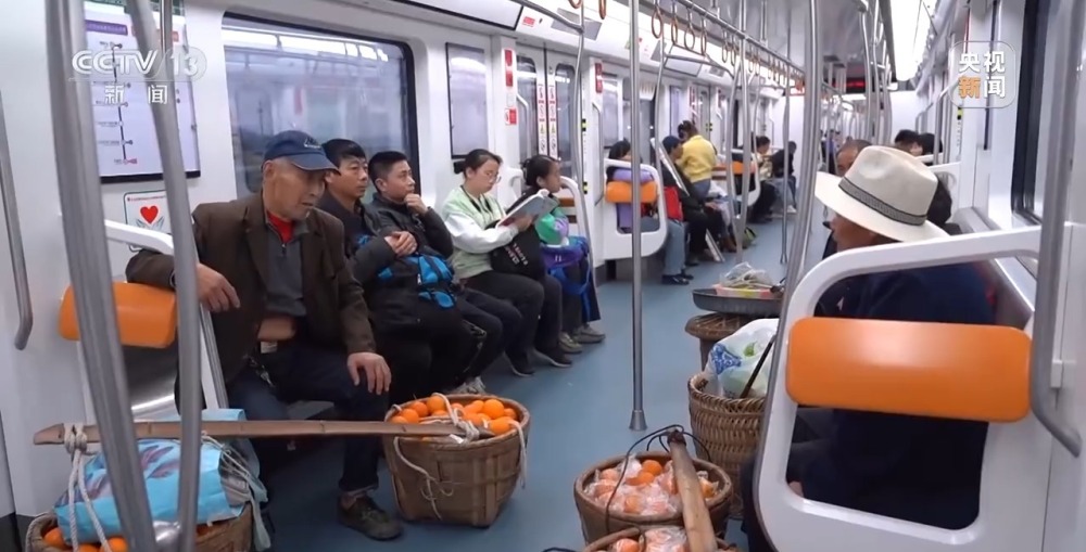 地鐵線沒通時(shí),他們都會前往石船鎮(zhèn)和附近的場鎮(zhèn)去賣橙子,那時(shí),老兩口便會挑著橙子走上1個(gè)多小時(shí),行程8里地,才能到鎮(zhèn)上,但鎮(zhèn)上賣得并不好,果子時(shí)長會因?yàn)橘u不出去而爛在地里。今年一月開始,商戶上門收購,外加上每天乘地鐵去賣橙子,老兩口的橙子已經(jīng)銷售了8000多斤,剩下還有2000斤左右。有地鐵的便利加持,老兩口并不擔(dān)心爛在地里這件事兒,只盼著行情好些,能夠多賺些。