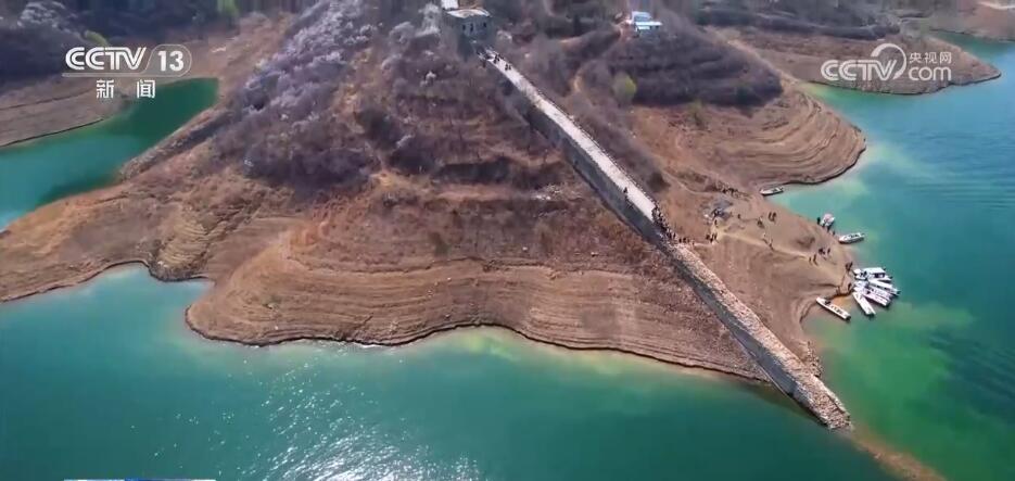 您現(xiàn)在看到的是位于河北省寬城滿族自治縣境內的潘家口水庫“水下長城”。長城內外,漫山遍野的山杏花悄然綻放,在春風中爭芳斗艷,時而飄來陣陣花香。春日里,盛開的杏花、碧綠的湖水與巍峨的長城交相輝映,形成了剛柔之美的完美融合,構成一幅絕美的畫卷,吸引了眾多游客登上長城前來賞花踏青。