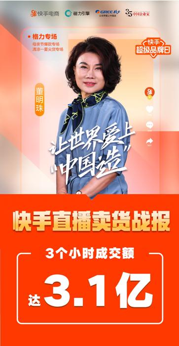 董明珠快手帶貨3小時成交破3億 老鐵消費力刷新認知