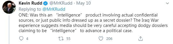 5月10日,陸克文在社交媒體再次連發(fā)五問,質疑可能參與此次“甩鍋中國”事件的各方。他的第一問稱,這所謂的15頁“情報”,究竟是源于真實的絕密情報,還是根據(jù)公開信息拼湊而成?他表示,“伊拉克戰(zhàn)爭的教訓早已告誡媒體,必須謹慎對待所謂的‘情報’,以防陷入某種政治目的之中。”