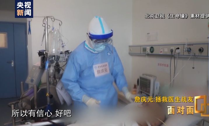 詹慶元:不是重要,是最重要,因?yàn)樗炎约旱拿旁谀闶掷铮还苁撬救诉€是他家屬,還是武漢中心醫(yī)院對(duì)我們都是百分之百信任,所以這一點(diǎn)我特別感動(dòng),但是也都知道這兩個(gè)病人確實(shí)是非常難的,要盡我所能把他救過來,不惜一切代價(jià)。