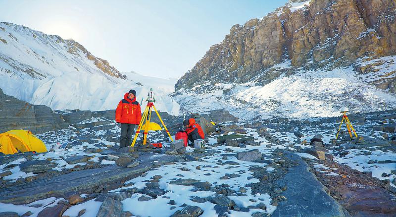更多測繪人的日常被記錄下來。史志剛,重力測量組組長,除完成珠峰地區(qū)加密重力測量之外,他還完成海拔5200米至6000米所有6個交會點(diǎn)的重力測量,成為本次珠峰高程測量項(xiàng)目中,唯一一個走遍所有交會測量點(diǎn)的人。王戰(zhàn)勝,在本次珠峰高程測量中負(fù)責(zé)高程導(dǎo)線、GNSS測量和東絨3點(diǎn)的交會測量工作。他攀冰跨河,4次到達(dá)海拔最高的東絨3交會點(diǎn)。鄭林,大本營交會測量組組長,帶著年輕隊(duì)員武光偉克服了距離峰頂遠(yuǎn)、交會測量難度大的困難,完成珠峰大本營的交會測量及基準(zhǔn)站值守工作……