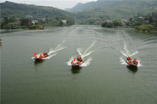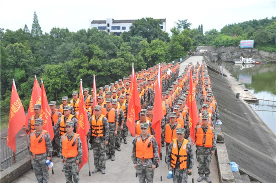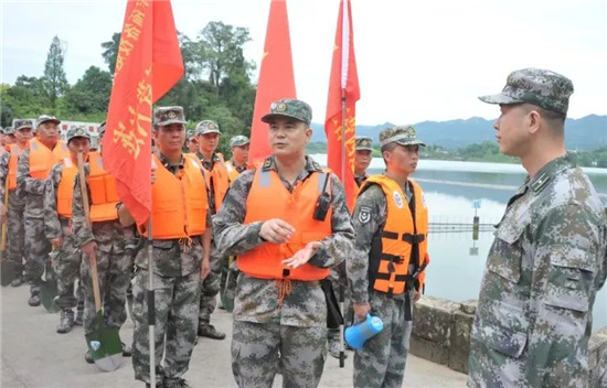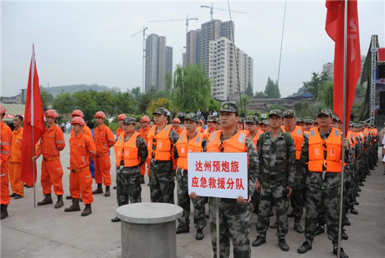 下午15時,大竹縣烏木水庫大堤上,200余名預(yù)備役官兵身著橘色救生衣集結(jié)完畢,應(yīng)急分隊(duì)的紅旗迎風(fēng)招展,機(jī)關(guān)各科協(xié)調(diào)的保障力量也源源不斷往集結(jié)地域開進(jìn)。15時20分,應(yīng)急分隊(duì)已到達(dá)指定地域,救援物資全部到位。