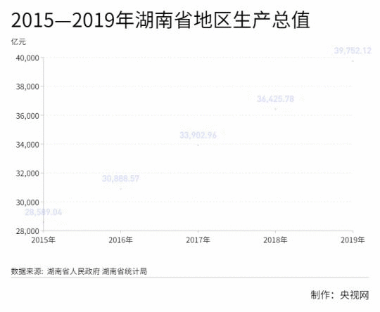 2019年,湖南地區(qū)生產(chǎn)總值接近4萬(wàn)億元,達(dá)39752.12億元,按不變價(jià)格計(jì)算,比上年增長(zhǎng)7.6%,符合7.5%—8%的預(yù)期目標(biāo)。