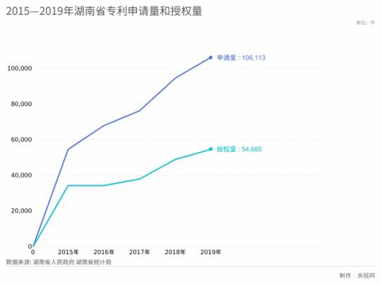 圖6:2015—2019年湖南省專利申請(qǐng)量和授權(quán)量