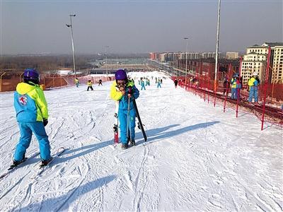 2月6日下午,位于大興區(qū)的龍熙滑雪場內,上百名滑雪者在此滑行。新京報記者注意到,許多滑雪初學者在雪道下方的緩沖區(qū)域內練習,一旁練習道上的滑雪者寥寥無幾?!霸谀膬憾家粯?。”一名在緩沖區(qū)域雪道上逆行、自稱沒有任何滑雪基礎的滑雪者稱。