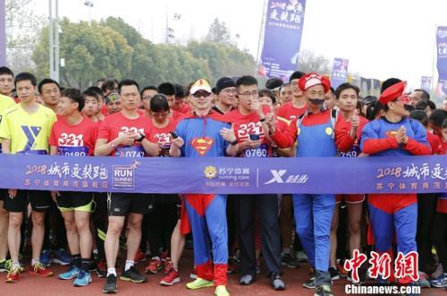 中新網(wǎng)3月27日電 近日,由蘇寧體育聯(lián)合特步中國全力打造的首屆2018蘇寧體育“城市變裝跑”在南京綠博園內(nèi)盛大舉行。這是一場(chǎng)觸發(fā)能量、喚醒春意的體育賽事,不僅是運(yùn)動(dòng)愛好者的嘉年華,更是一場(chǎng)全民參與的趣味活動(dòng)。