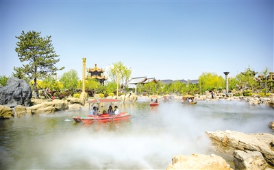 5月9日,游人在網(wǎng)紅惱包村的人工湖中坐船游覽美景。連日來(lái),呼和浩特市氣溫逐步上升,綠葉、青草和鮮花為城市帶來(lái)了生機(jī)和活力,不少市民來(lái)到戶外,與親朋好友共度休閑時(shí)光。 (牛天甲)