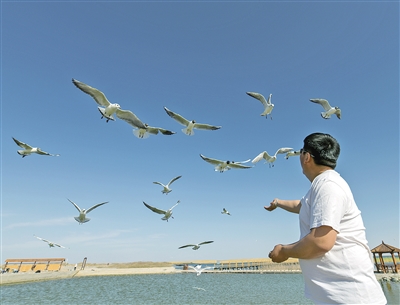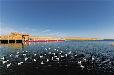 “湖濱密生蘆葦,入秋蘆花飛舞,宛若柳絮。……鵝翔天際,鴨浮綠波,碧水青天,馬嘶雁鳴……”居延海曾經(jīng)失去過這樣的神韻風(fēng)姿。 近年來,隨著保護力度的加大與生態(tài)環(huán)境逐漸恢復(fù),湖中生機再現(xiàn),樹木起死回生,水鳥凌空飛翔,這顆大漠深處的藍色明珠再一次熠熠生輝?。ㄓ浾?懷特烏勒斯 攝影報道)