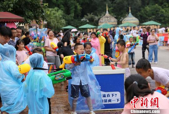 圖為游客們手持水槍、水盆等道具展開“激戰(zhàn)”?!$娦?攝