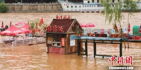 6月27日,黃河蘭州段水位大漲,蘭州城區(qū)近水廣場(chǎng)被淹?!$娦馈z