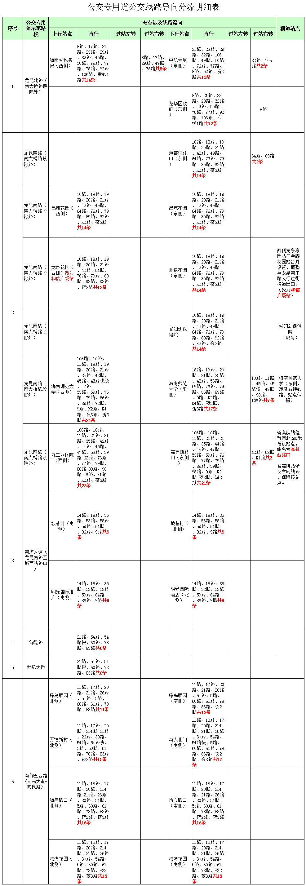 附>>>公交專用道公交線路導(dǎo)向分流明細(xì)表