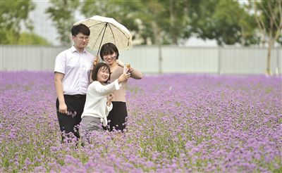 七彩花田總面積約5.6萬平方米,采用宿根花卉、草本花卉間種的形式,可實現(xiàn)春、夏、秋三季均有花可觀。昨天記者在現(xiàn)場看到,7000平方米的紫色馬鞭草成片盛開,風(fēng)吹花浪起伏。據(jù)相關(guān)負(fù)責(zé)人介紹,七彩花田是空港生態(tài)綠廊項目的重要組成部分。目前,保稅區(qū)已建成公共綠地1020萬平方米。(文/記者 戰(zhàn)旗 圖/記者 賈磊)