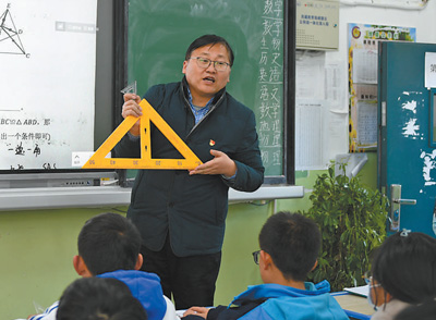 繁忙的管理工作以外,吳智勇主動(dòng)承擔(dān)了初二年級一個(gè)班的數(shù)學(xué)教學(xué)工作。每個(gè)學(xué)期,他都會(huì)收兩到三名教師作“徒弟”,他說:“我會(huì)查看他們的教學(xué)計(jì)劃、教學(xué)備課材料,盡量多聽他們的課,并在課后進(jìn)行輔導(dǎo)?!敝灰挥锌眨€會(huì)隨機(jī)聽本地教師講的數(shù)學(xué)課,課后進(jìn)行交流。
