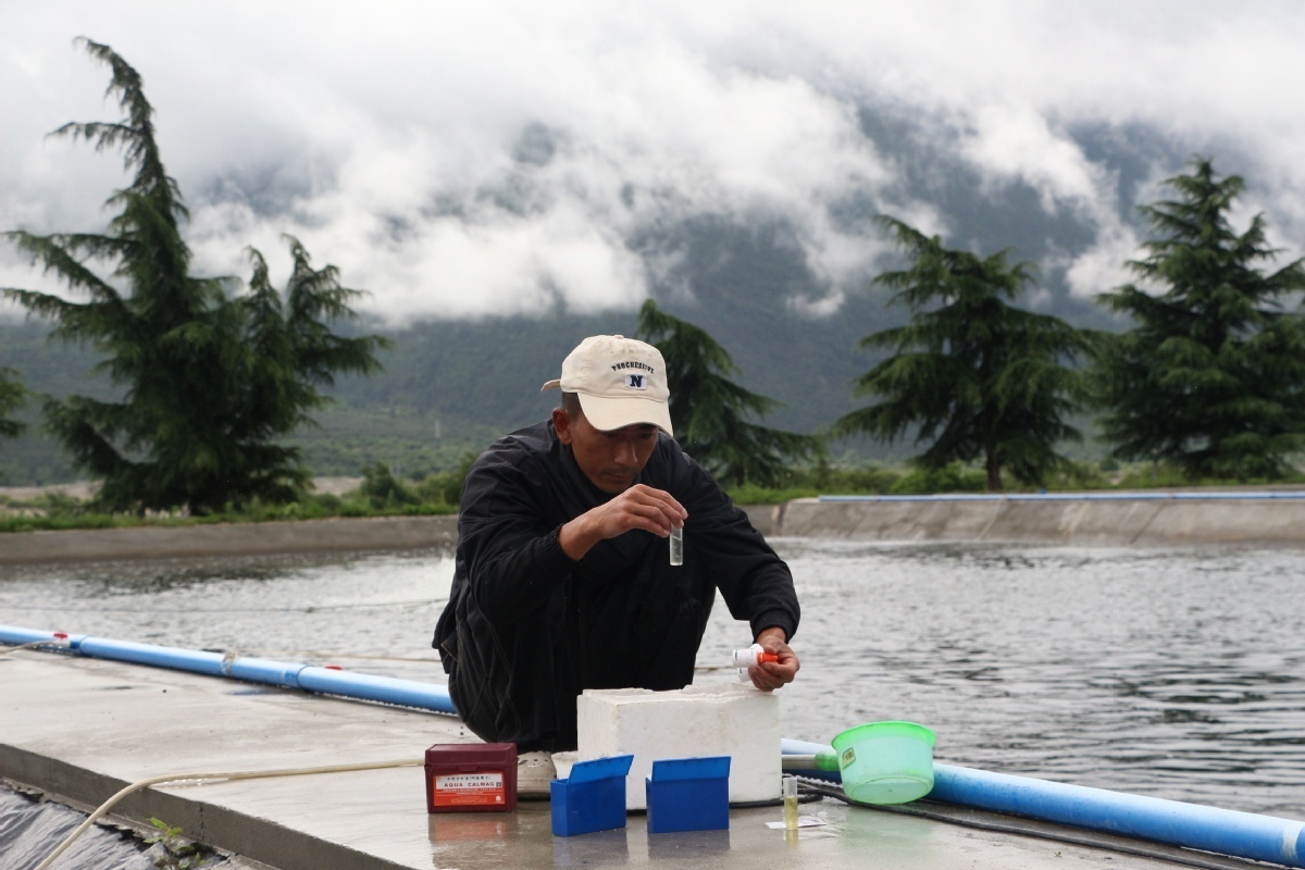 于是,養(yǎng)殖專用的蓄水池建了起來,現(xiàn)代漁業(yè)的監(jiān)測管理系統(tǒng)也被引進。如今,不論是駱明飛,還是藏族技術人員,早上起床第一件事,就是查看手機里的魚池監(jiān)測系統(tǒng),如有異常立即處理。