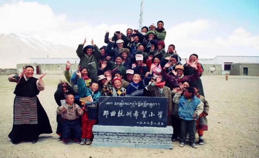那曲市平均海拔達(dá)4500米以上,是西藏海拔最高的地級市。1995年5月,浙江省第一批援藏干部來到這里,他們調(diào)研發(fā)現(xiàn)當(dāng)時那曲地區(qū)適齡兒童入學(xué)率只有22.5%,艱苦的環(huán)境和薄弱的基礎(chǔ)設(shè)施橫亙在高原兒童的求學(xué)路上。時任那曲縣常務(wù)副縣長的援藏干部姜軍給《杭州日報》領(lǐng)導(dǎo)寫了一封信,希望能夠獲得家鄉(xiāng)人民的支持,為那曲捐款建設(shè)一所小學(xué)。