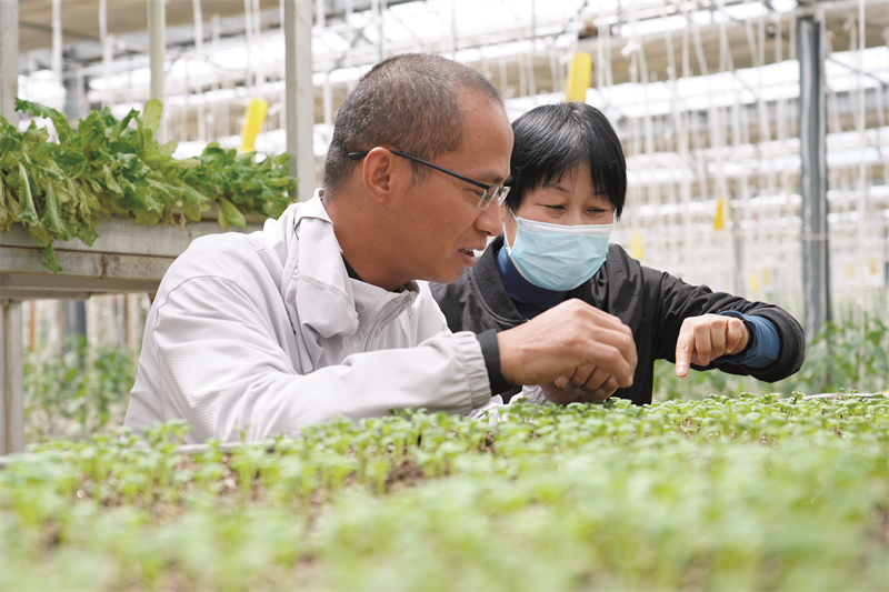 胡能兵向群眾傳授蔬菜種植技術(shù)。徐森 攝