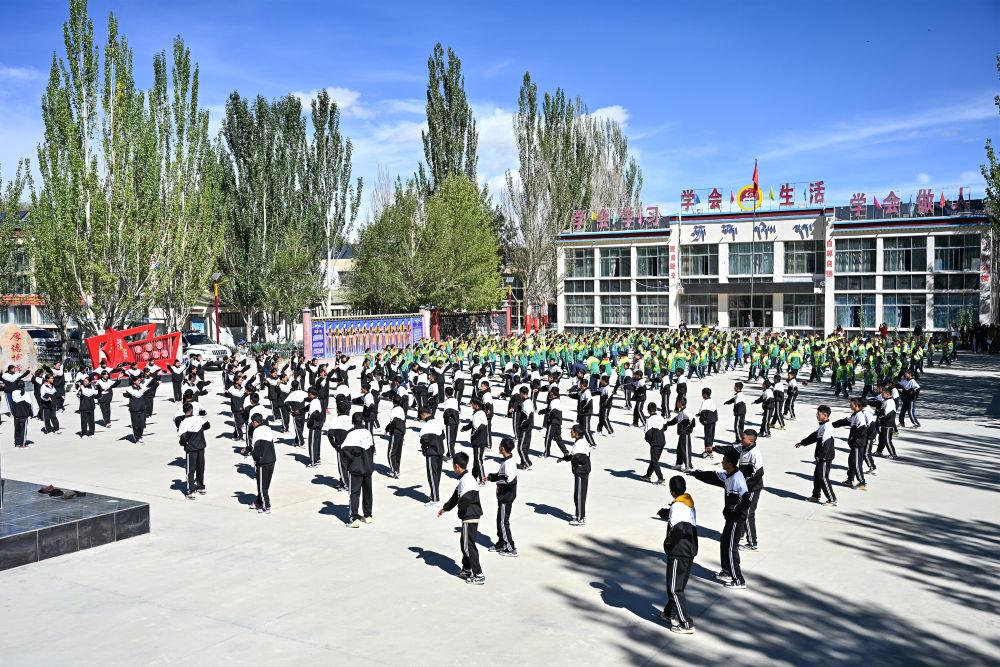 課間時分,孩子們跳起融入國家級非物質(zhì)文化遺產(chǎn)“宣舞”特色的課間操,各民族學(xué)生手拉著手,笑容如同高原陽光般燦爛。