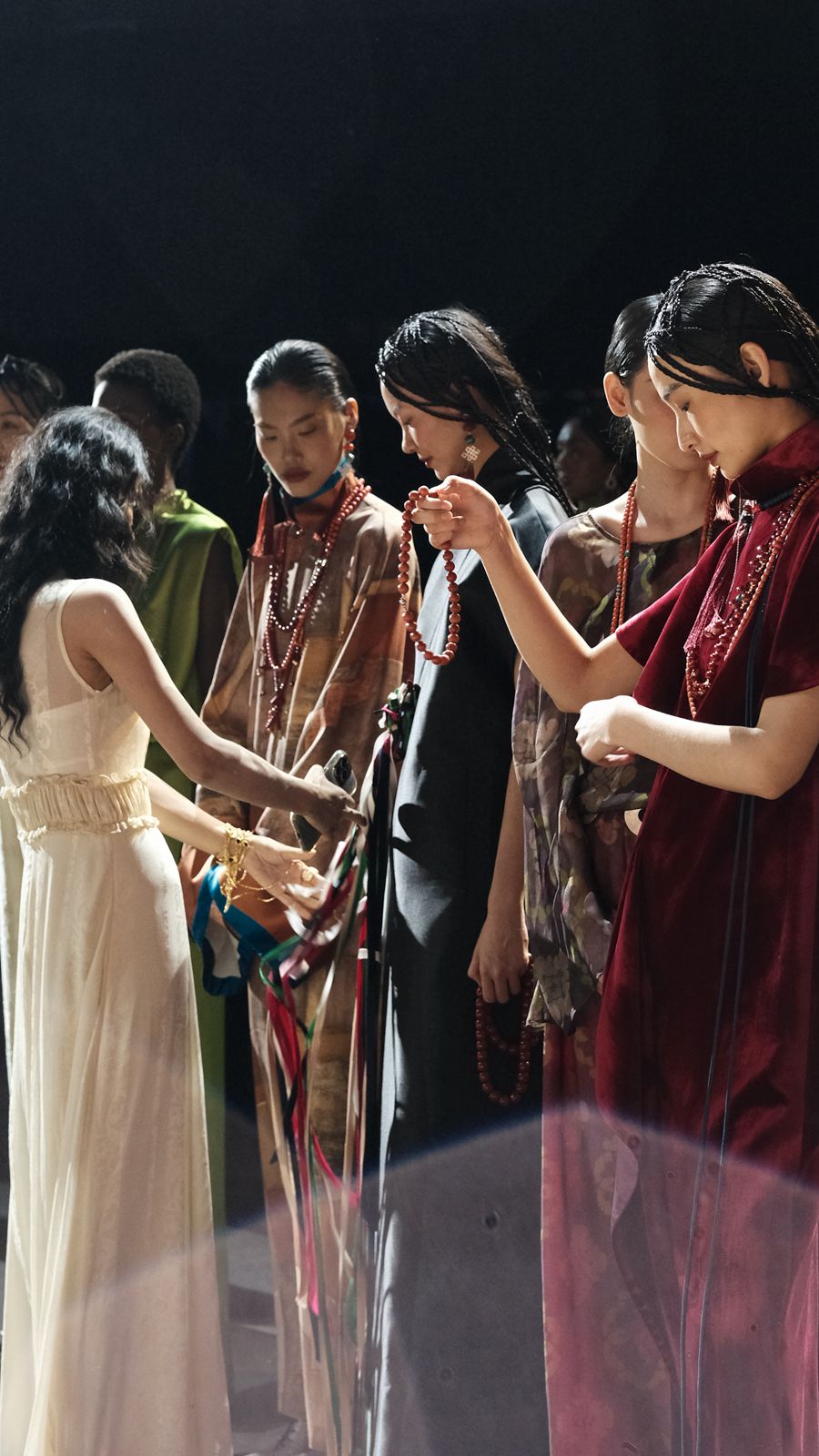 素白在中國國際時裝周發(fā)布2025春夏新品的當(dāng)天,是品牌創(chuàng)始人馬乖的生日。這場秀像是設(shè)計師前半途的答卷,在品牌的重要節(jié)點打下了扎實的“結(jié)”,創(chuàng)立于2020年,第一個亮相時裝周的湖南原創(chuàng)品牌,創(chuàng)立之初,品牌的影響力完全來自于互聯(lián)網(wǎng),在湖南株洲的服飾熱土上,有得天獨厚的市場集群優(yōu)勢,在傳統(tǒng)服飾資源的滋養(yǎng)下,“爆款”道路輕車熟路,但是馬乖沒有急于“收割”,而是耐心走出了另一條路:推動民族文化基因的時尚化再生,讓原創(chuàng)品牌在中國式現(xiàn)代化進(jìn)程中被賦予新的內(nèi)容和發(fā)展路徑。