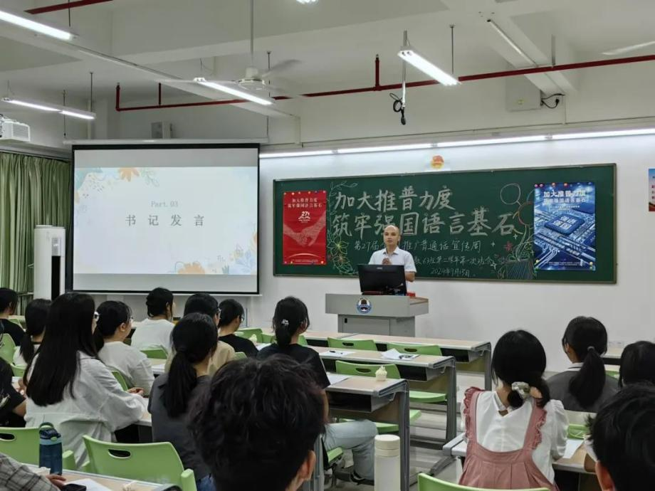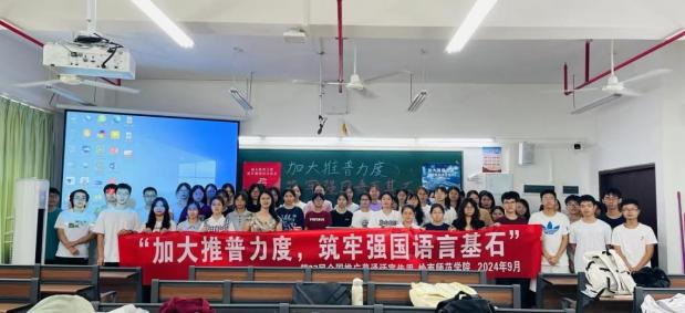 新時代教育高質(zhì)量發(fā)展的浪潮中,加強國家通用語言文字教育是提升國民素質(zhì)、促進文化認同、推動社會進步的重要基石。嶺南師范學(xué)院積極響應(yīng)國家關(guān)于加強國家通用語言文字推廣普及的號召,圍繞“加大推普力度,筑牢強國語言基石”第27屆全國推普周主題,依托學(xué)?!督處熣Z言》課程組,成功舉辦了一系列豐富多彩、特色鮮明的語言文化活動,不僅彰顯了學(xué)院在師范教育領(lǐng)域的深厚底蘊與創(chuàng)新活力,更為國家語言文字建設(shè)和教育強國戰(zhàn)略貢獻了重要力量。