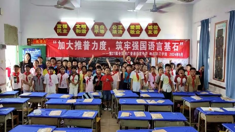 教育強國戰(zhàn)略背景下,為培養(yǎng)未來教育領(lǐng)軍人才、助力鄉(xiāng)村振興與邊疆教育發(fā)展,嶺南師范學(xué)院《教師語言》課程組十分重視師范生職業(yè)技能教育實踐。9月13日—9月18日,通過組織師范實習(xí)生、援藏支教實習(xí)生及扎根鄉(xiāng)村教育的畢業(yè)生積極參與各類推普活動,促進了國家通用語言文字的廣泛普及,深刻體現(xiàn)了教育公平與文化傳承的時代價值。