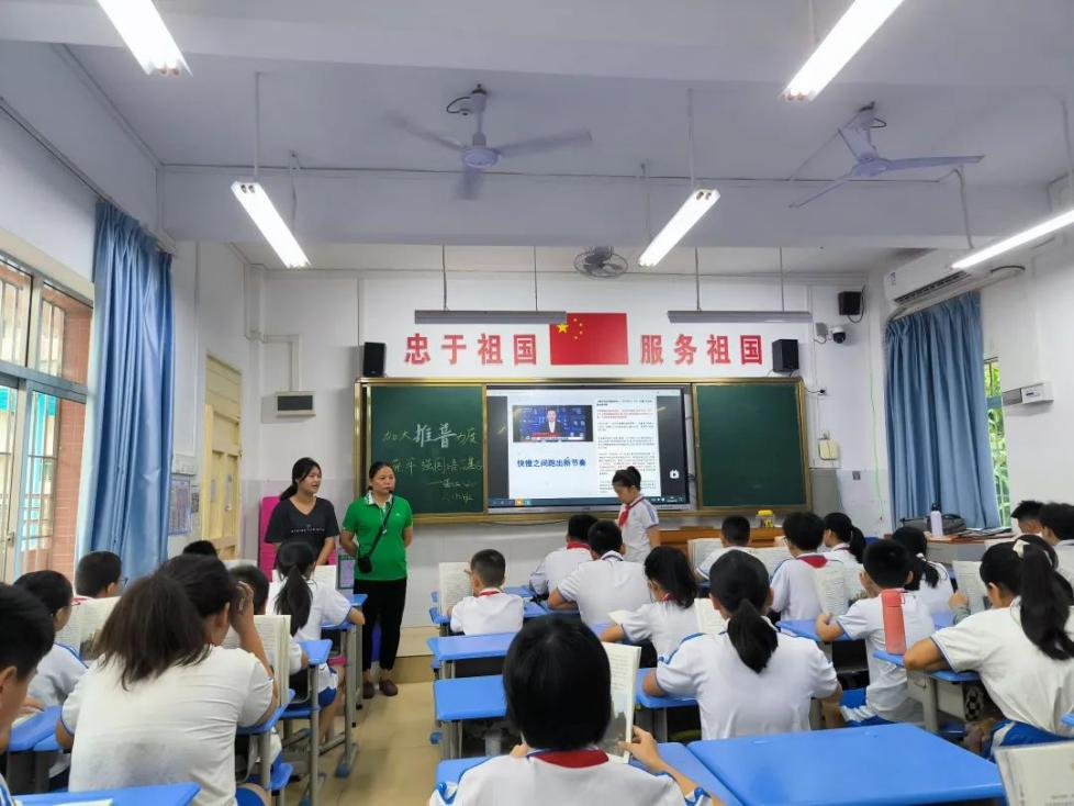 湛江市第四小學(xué)實習(xí)生戴鈺瑩指導(dǎo)學(xué)生誦讀紅色經(jīng)典現(xiàn)場