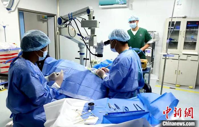 圖為援藏眼科專家張升慶和普蘭縣人民醫(yī)院醫(yī)護(hù)人員進(jìn)行白內(nèi)障手術(shù)。尼瑪次仁 供圖
