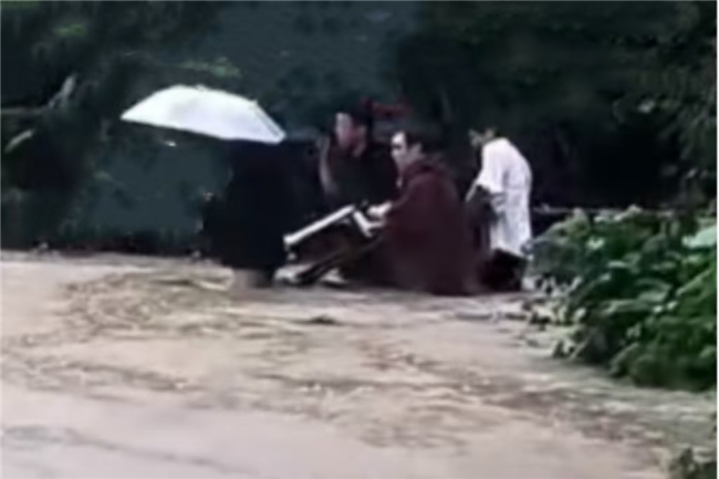 由于連續(xù)降雨,老人家中附近道路地勢(shì)低洼,蹣跚趕到時(shí),已經(jīng)水勢(shì)及腰。吳明輝趕忙和村民一起將老人抬至安全地帶。老人順利脫險(xiǎn)。