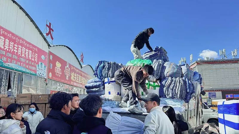 立馬行動起來!他們自籌資金,陳軍亮還聯(lián)系到一些戰(zhàn)友,共同集資采購救災(zāi)物品。作為公益機(jī)構(gòu)負(fù)責(zé)人,王順利和她的小伙伴,第一時間買了從西安轉(zhuǎn)機(jī)飛往拉薩的機(jī)票,并在路上聯(lián)絡(luò)西藏的伙伴,采購物資足足裝了3卡車,共30多噸,價值超過40萬元,緊急運輸發(fā)往定日。