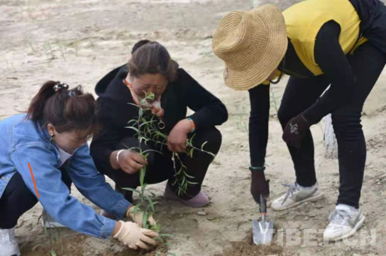 圖為附近村民在藏草萬畝植物種苗繁育基地工作 攝影:拉姆