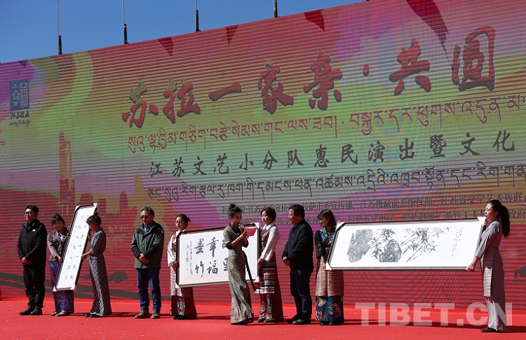 圖為江蘇省文聯(lián)文藝小分隊(duì)走進(jìn)西藏自治區(qū)拉薩市墨竹工卡縣,開展“蘇拉一家親 共圓復(fù)興夢”惠民演出暨文化交流活動(dòng)