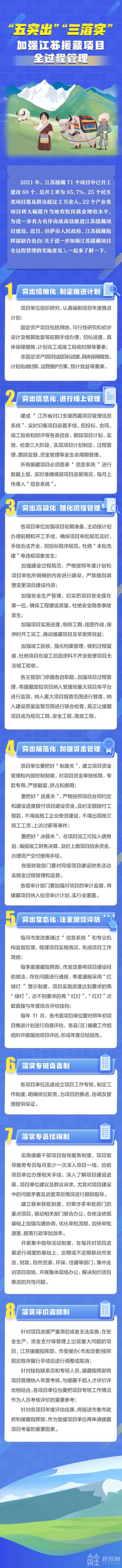 “十四五”期間,拉薩市人民政府、江蘇援藏指揮部將對(duì)江蘇援藏項(xiàng)目全程管理、高效推進(jìn),研究發(fā)布《關(guān)于進(jìn)一步加強(qiáng)江蘇援藏項(xiàng)目全過程管理的實(shí)施意見》,推出專班制負(fù)責(zé)項(xiàng)目實(shí)施、精細(xì)化制定推進(jìn)計(jì)劃、信息化規(guī)范項(xiàng)目管理、全流程強(qiáng)化項(xiàng)目管理、掛鉤式跟蹤指導(dǎo)服務(wù)、全方位加強(qiáng)資金管理、常態(tài)化注重績(jī)效評(píng)估、多維度運(yùn)用評(píng)價(jià)成果等8項(xiàng)扎實(shí)舉措,高質(zhì)量推進(jìn)江蘇援藏項(xiàng)目建設(shè),提升對(duì)口支援的綜合成效。