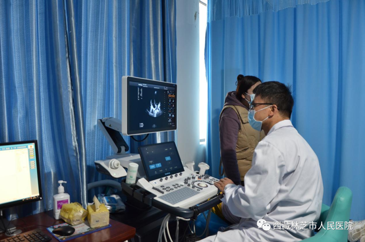 圖為林芝市醫(yī)療援藏專家正在為當(dāng)?shù)厝罕娺M(jìn)行先心病篩查