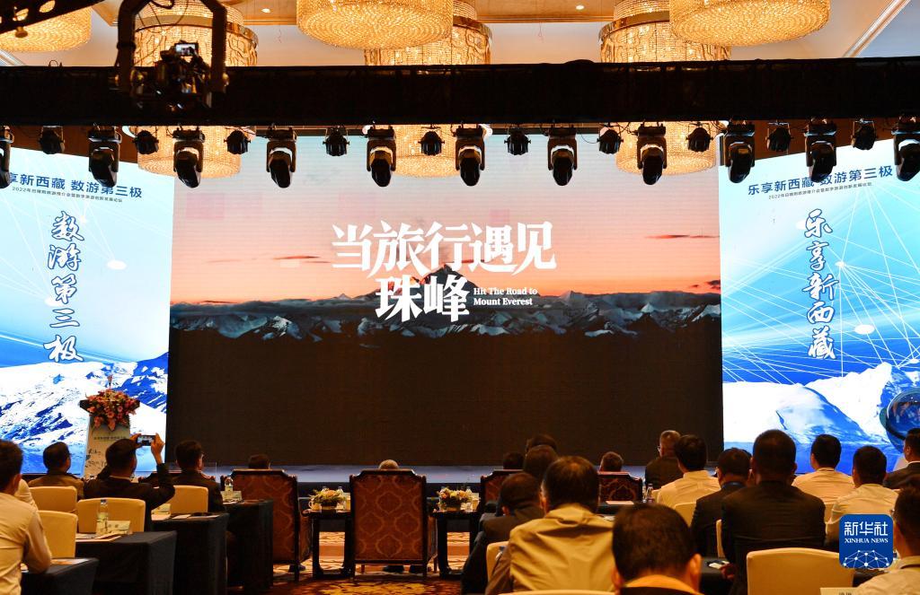 在2022年西藏日喀則旅游推介會暨數(shù)字旅游創(chuàng)新發(fā)展論壇上,國內(nèi)業(yè)界人士就數(shù)字文旅和日喀則旅游數(shù)字化發(fā)展前景進行主題演講和對話(7月15日攝)。新華社記者 張汝鋒 攝