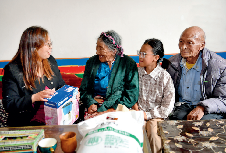 入戶走訪的過(guò)程中,王玉秀收獲了許多藏族老百姓的信任和喜愛。援藏結(jié)束前,她專門去看望在日喀則市謝通門縣初村結(jié)識(shí)的次仁和格桑桑珠,還為他們留下生活用品和現(xiàn)金。臨別時(shí),次仁感動(dòng)地說(shuō):“能有這么一位‘親戚’,我們真的很高興?!?/p>