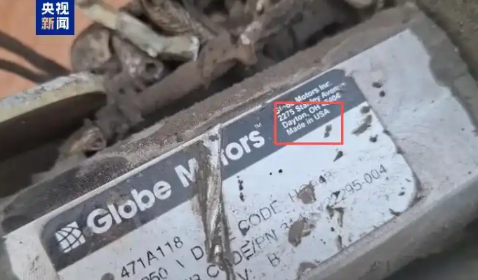 襲擊伊朗南部米納卜學(xué)校的導(dǎo)彈殘片上“美國(guó)制造”字樣清晰可見(jiàn) 圖:央視新聞