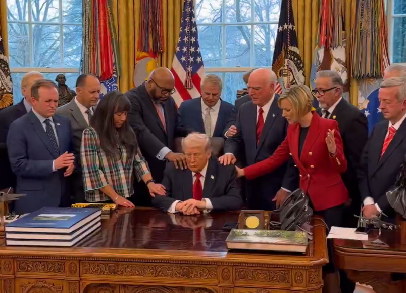 特朗普與來(lái)自全美各地的牧師一同祈禱 圖:觀察者網(wǎng)
