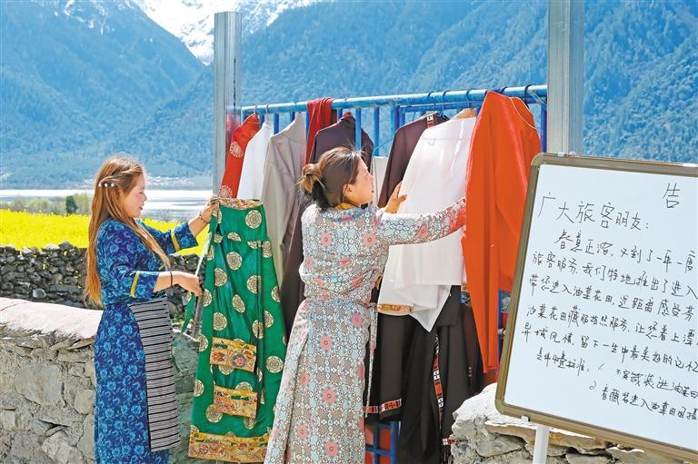 圖為群眾打理租借的藏裝。