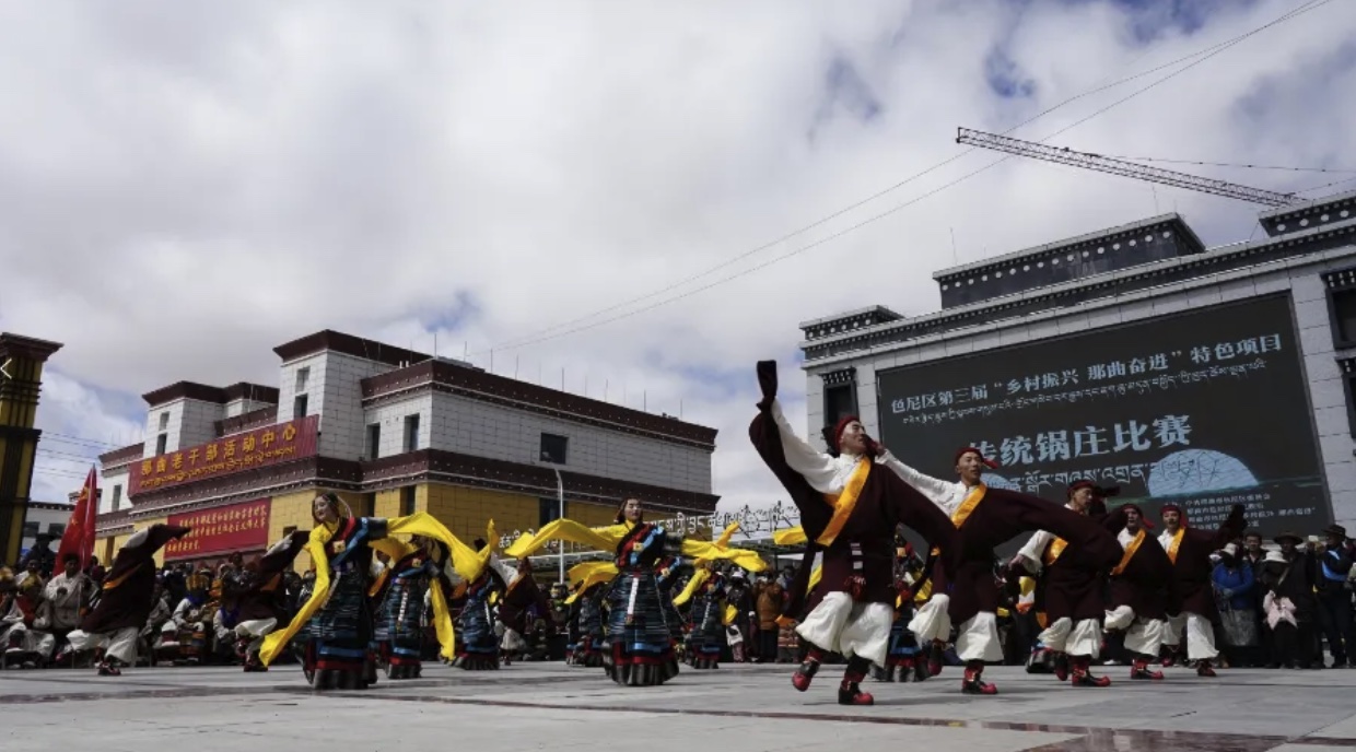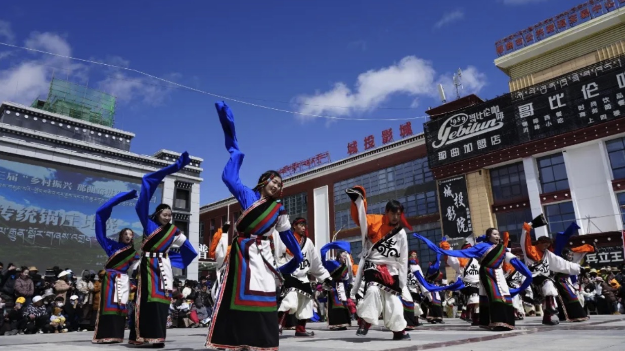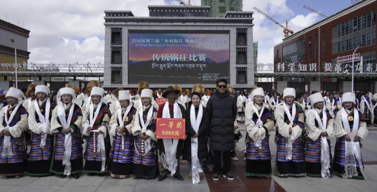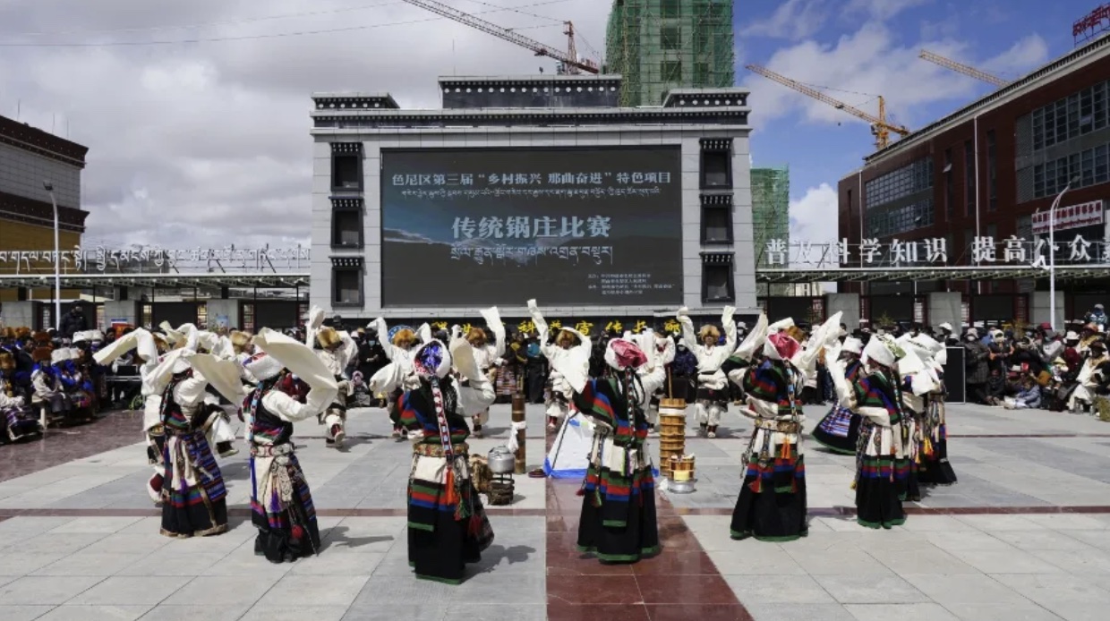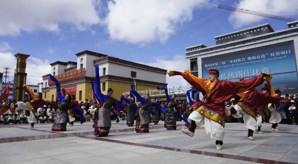 為進一步傳承和發(fā)揚民族文化,豐富牧民群眾的業(yè)余生活,4月26日,色尼區(qū)在那曲大廈廣場隆重舉行了第三屆“鄉(xiāng)村振興 那曲奮進”特色項目傳統(tǒng)鍋莊比賽。此次比賽吸引了來自各鄉(xiāng)鎮(zhèn)的13支代表隊參與,他們身著盛裝,舞姿翩翩,展示了色尼區(qū)獨特的民族風情和鍋莊文化的魅力。