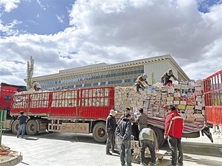 圖為工作人員在搬運(yùn)圖書。記者 格桑倫珠 攝