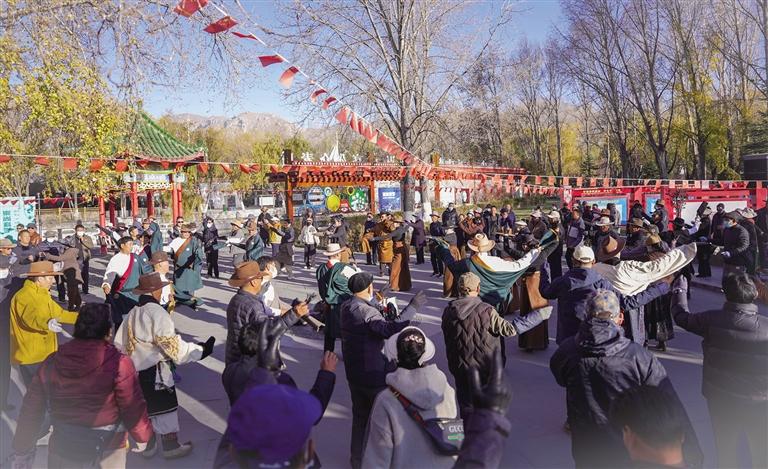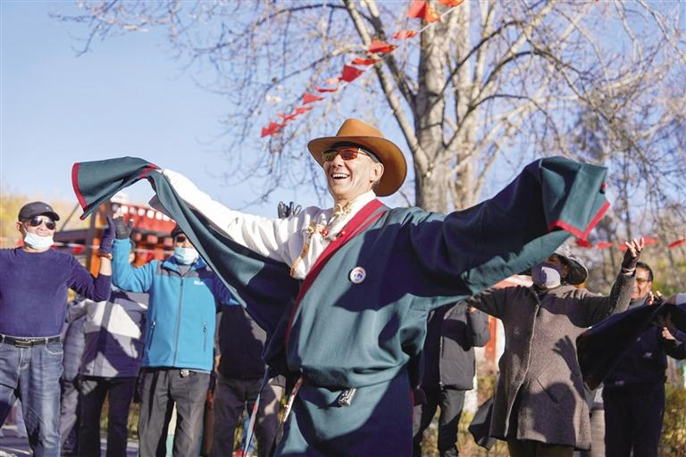如今,隨著城鎮(zhèn)化發(fā)展,鍋莊漸漸融入人們的日常生活,成為很多人晨練和廣場舞的首選,刷新著人們對于傳統(tǒng)廣場舞的認(rèn)識(shí)?!拔覀兠褡宓膫鹘y(tǒng)舞蹈‘鍋莊’從農(nóng)牧區(qū)跳到城市,跳進(jìn)了大眾的日常生活,我感到很自豪?!眮碜阅乔械牡聭c卓瑪說。