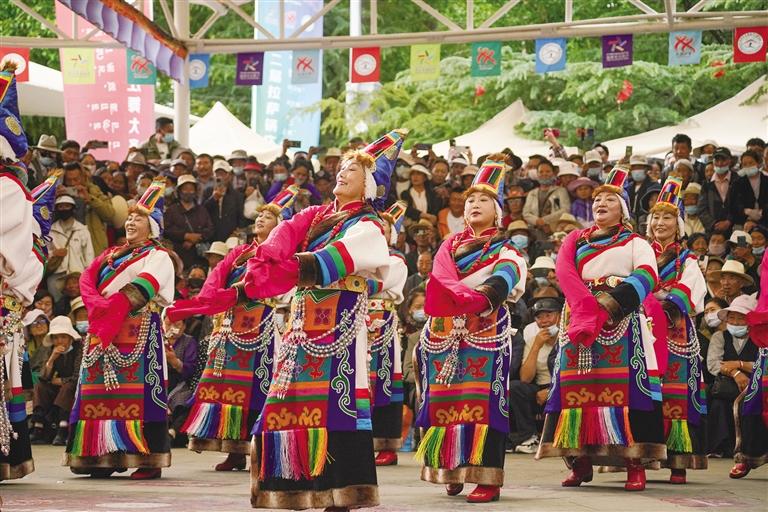 音樂響起,大家隨著節(jié)奏舞動(dòng),每個(gè)人舉手投足間都是那么自然和率真,大家著裝各異、民族各異,但是所有人臉上洋溢著幸福歡快的笑容。在這里,傳統(tǒng)和現(xiàn)代交織,民族文化交往交流交融。