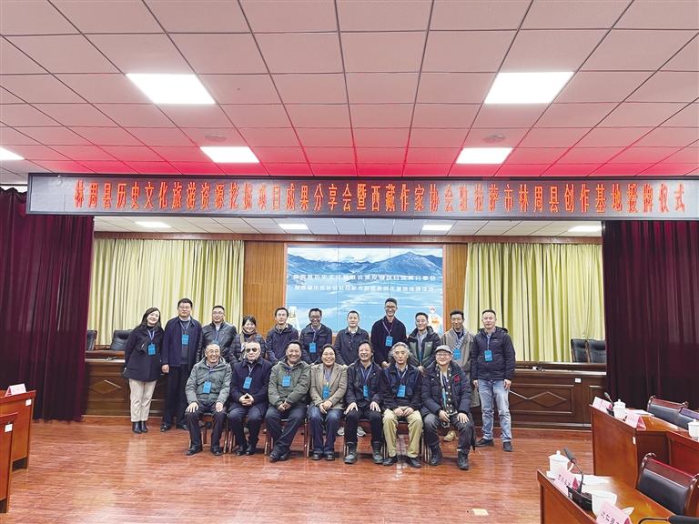 分享會(huì)后,西藏作家協(xié)會(huì)駐拉薩市林周縣創(chuàng)作基地揭牌。“今天聽(tīng)完專(zhuān)家學(xué)者們的講述,對(duì)林周有了新的認(rèn)識(shí),今后也將邀請(qǐng)更多區(qū)內(nèi)外的作家到林周進(jìn)行采風(fēng),以林周縣歷史文化、民風(fēng)民俗為題材創(chuàng)作出更多優(yōu)秀作品,助力林周縣文旅產(chǎn)業(yè)發(fā)展。”西藏作協(xié)常務(wù)副主席次仁羅布說(shuō)。